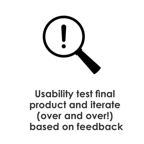 Usability test final product and iterate (over and over!) based on feedback